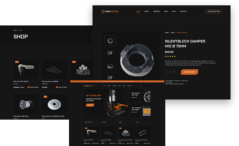 Look of your website on mobile devices is very important these days. So we made sure ProMotors looks great both on mobile, desktop and retina screens!