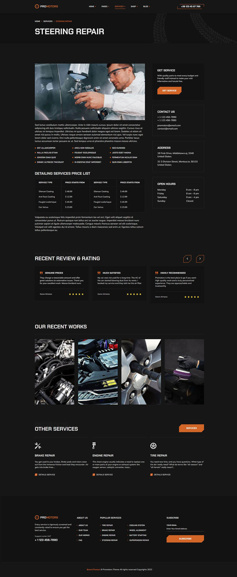 This theme can be used for Auto Mechanic, Car Repair Shops, Garages, Mechanic Workshops, Auto Painting and other Auto and Car related services.